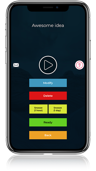 The usage is quite easy, you can anytime record your new thoughts and listen to them again as many times as you wish. Imagine that you’re sitting in your car and driving. Do you have a new idea and you only need to push a few buttons on your smartphone, record what is in your mind, choose a trigger date and activate the reminder or send it in email.